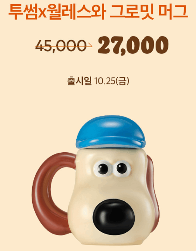 2024년도에 투썸과 콜라보로 컵을 출시한 그로밋 머그 컵.
